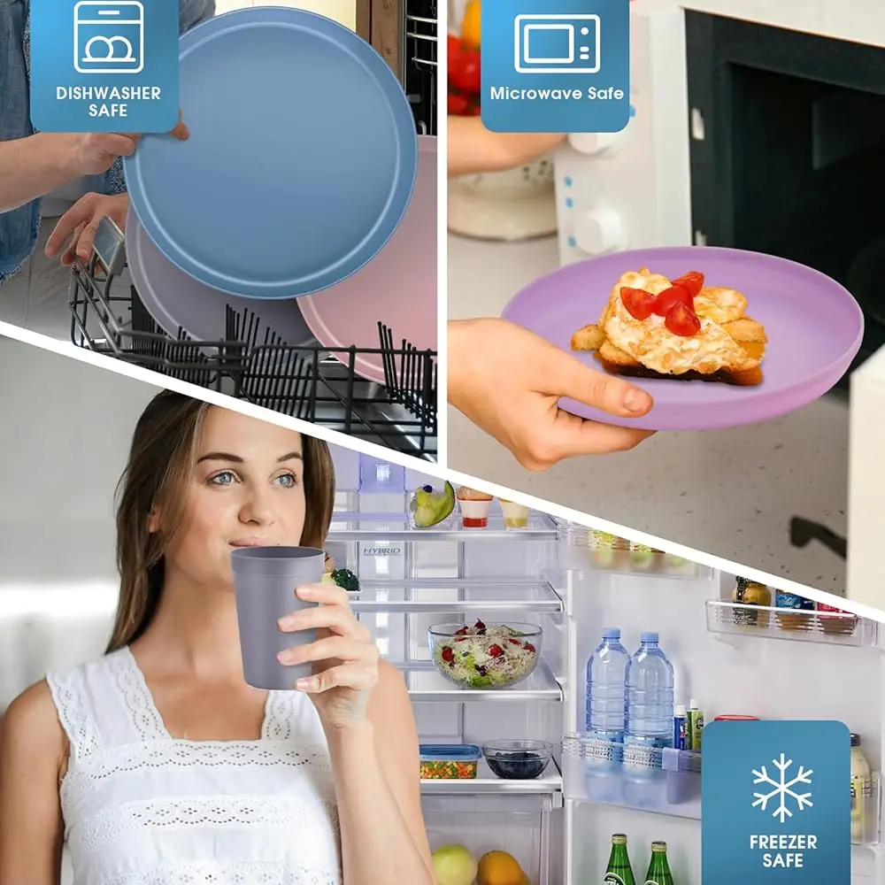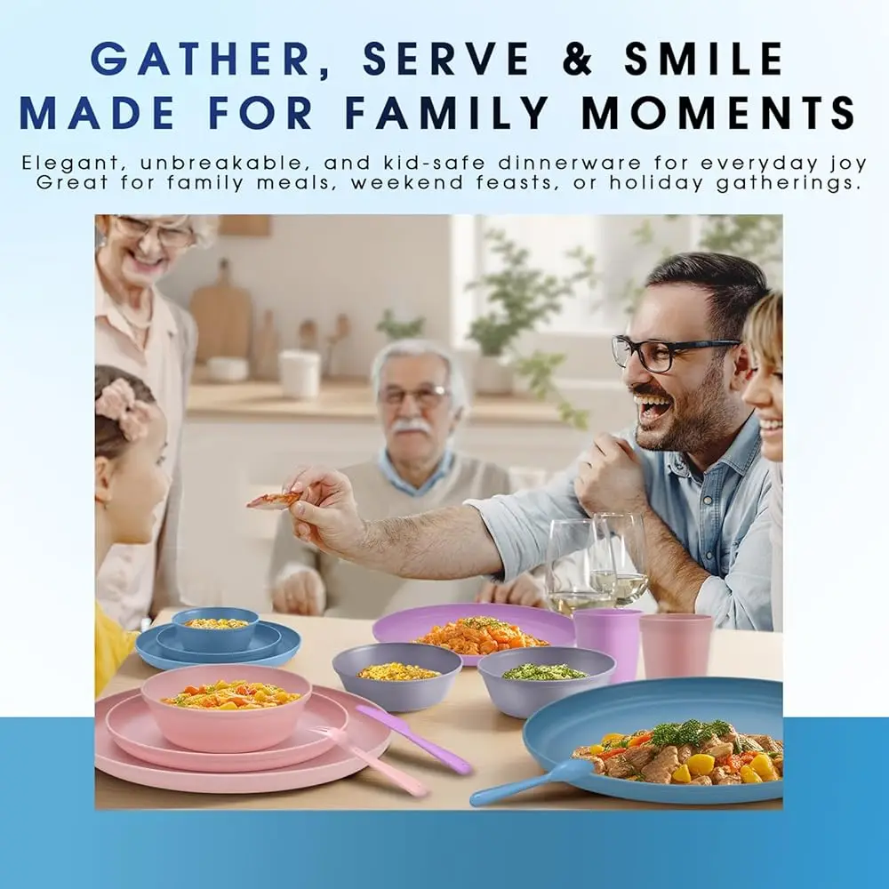 Brighten your dining table with this 40-piece pastel plastic dinnerware set designed to serve eight people. The complete set includes plates, bowls, cups, knives, and forks for a coordinated table setting. Made from durable and unbreakable materials, it is ideal for everyday family use. The lightweight construction makes it easy to carry for picnics, camping, or outdoor gatherings. Soft pastel colors add a modern and refreshing touch to any meal. The reusable design helps reduce waste compared to disposable tableware. Stackable pieces allow convenient storage in kitchen cabinets or travel bags. Suitable for both indoor and outdoor dining occasions. Easy to clean and maintain for daily convenience. This versatile dinnerware set combines durability, functionality, and stylish design for home meals and special events.